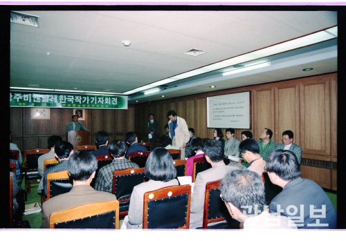광주비엔날레조직위원회가 1995년 4월22일 한국 참여작가를 발표하는 기자회견 모습.