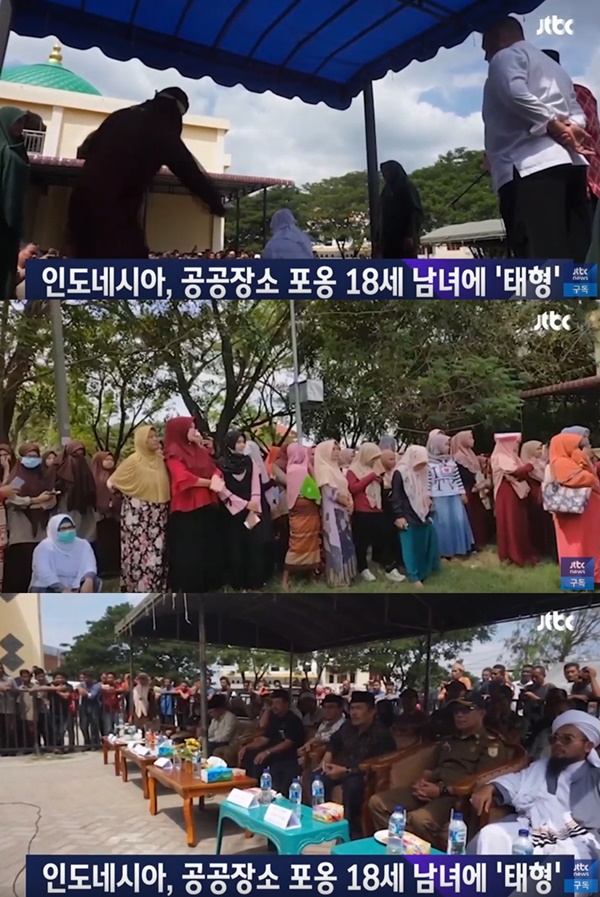 지난달 31일(현지시각) 다수 외신에 따르면 인니 10대 커플이 많은 이들이 보는 앞에서 허그(포옹)을 해 공개 태형을 받았다.