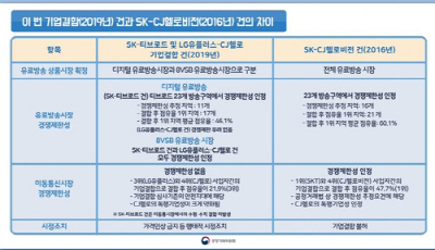 이번 심사 결과에 대한 공정위의 언론 브리핑 현장에서 상당수 질문은 ‘SK텔레콤-CJ헬로비전 합병 불허 당시와 왜 심사 결과가 다른지’에 집중됐다.