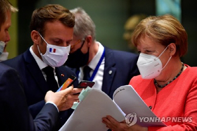 메르켈 "EU 최대위기에서 대응책 마련"…마크롱 "역사적인 날"