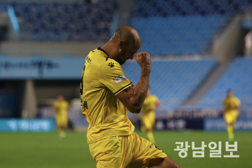 광주는 지난 30일 DGB대구은행파크에서 열린 하나원큐 K리그1 2020 18라운드 대구FC와의 원정경기에서 멀티골에 성공, 광주 외인 선수 1부리그 최다득점(10골) 기록을 갈아치우며 구단 득점 역사에 새 페이지를 썼다.