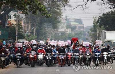 네피도에서 근무 중인 오영인 한국농어촌공사 미얀마 사무소장은 연합뉴스와 통화에서 “오토바이를 탄 시위대가 경적을 울리고 세 손가락 경례를 하며 약 5분간 지나가는 것을 목격했다”고 말했다.