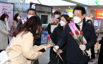 목포터미널서 ‘꽃 사주기 운동’ 행사…김영록 도지사 동참
