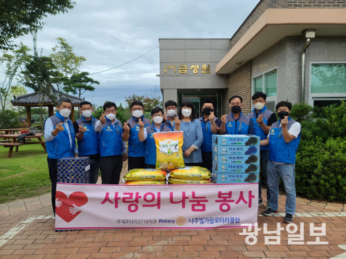 나주 빛가람 로타리클럽은 14일 금천면에 위치한 금성원을 방문해 생필품 등을 전달하고 봉사활동을 전개했다.