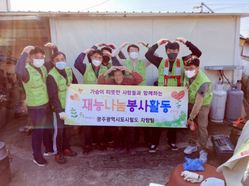 광주도시철도공사(사장 윤진보)는 최근 도시철도 2호선 차량기지가 들어설 예정지인 광주시 서구 유덕동의 독거노인 가정을 방문, ‘사랑의 집고치기’ 봉사활동을 펼쳤다.
