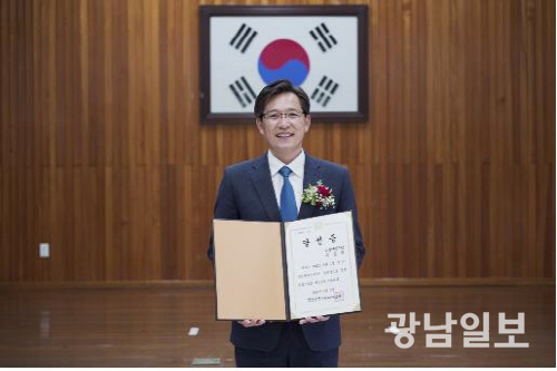 우승희 영암군수 당선인은 3일 영암군민회관에서 열린 당선증 교부식에서 영암군선거관리위원회(위원장 전호재)로부터 당선증을 교부받았다.