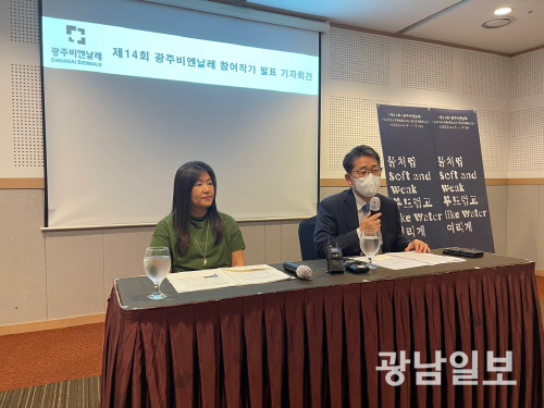 21일(재)광주비엔날레(대표 박양우)에 따르면 20일 오후 이숙경 예술감독 및 관계자들이 참석한 가운데 내년 4월7일부터 7월9일까지 비엔날레 전시관 등지에서 열릴 ‘2023 제14회 광주비엔날레’의 참여작가 발표 회견을 열고 세계 각국에 걸쳐 다양한 스펙트럼의 80여 작가가 참여하며, 40여 명 이상의 작가들이 신규 커미션 및 신작을 출품할 예정이다.