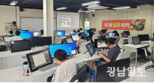 수강생들이 일러스트레이터 프로그램을 활용해 ‘투고용 웹툰 제작’ 수업을 듣고 있다.