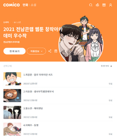 2021년 코미코(comico) 플랫폼에 연재된 2021 전남콘랩 웹툰 창작아카데미 우수작