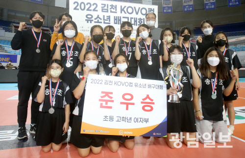 ‘2022 김천 KOVO컵 유소년 배구대회’에서 초등 고학년 여자부 준우승을 한 광주 송정초등학교 선수단.