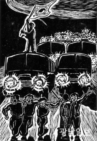 노래극 ‘오월’의 배경이 된 홍성담 작가의 판화 ‘새벽’