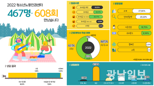 15일 광주청소년노동인권센터에 따르면 센터는 지난 2021년부터 지난해까지 872명과 아르바이트 관련 상담을 1183회 진행했다. 연도별로 2021년 405명(575회), 지난해 467명(608회)에게 상담을 제공했다.