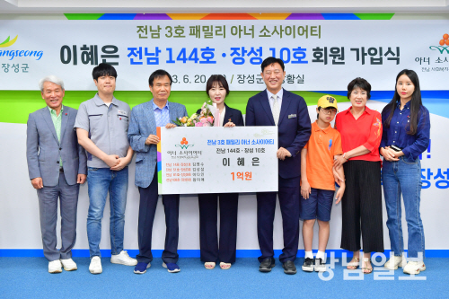 이날 가입식에서는 이혜은 아너에게 인증패와 꽃다발이 전달됐다. 이혜은 아너가 약정한 성금 1억원은 장성군 지역 복지사업비로 사용될 예정이다.