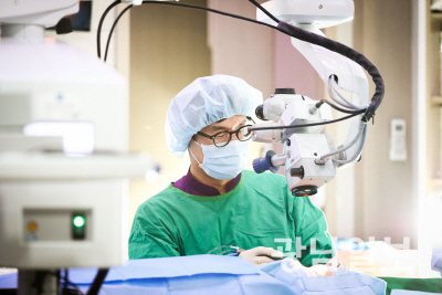 김재봉 신세계안과 대표원장이 안과 시술을 집도하고 있다.