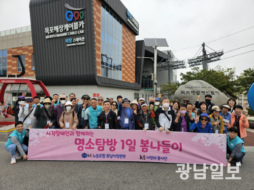 KT 전남전북광역본부는 16일 KT 노동조합 호남지방본부와 노사공동 사회공헌 활동으로 장애인의 날(4월 20일)을 맞아 시작장애인과 함께하는 명소 탐방 봄나들이 행사를 시행했다.