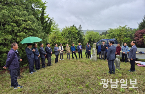 함평이씨 지평공파 문중은 삼강비의 유적지화 사업을 위해 이우춘 장군이 잠들어 있는 묘역을 정비하기로 하고 지난달 1차 모임을 가졌다.