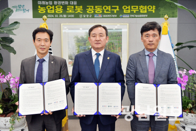 이병노 담양군수는 “이번 협약을 통해 첨단 농업기술의 허브로 발돋움할 계기를 마련하고, 스마트팜 및 인공지능 로봇을 활용한 효율적인 농업 생산 시스템을 구축할 것이다”며 “세 기관이 협력해 농업 생산성을 높이고, 환경친화적인 농업 모델을 개발해 지역사회 발전과 지속 가능한 미래 농업을 선도하겠다”고 말했다.