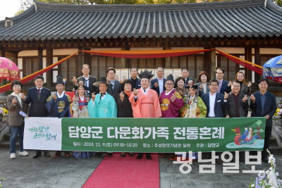 담양군은 최근 죽녹원 내 추성창의기념관에서 다문화부부 2쌍의 합동 전통혼례식과 온가족 어울림 한마당 행사를 마무리했다.