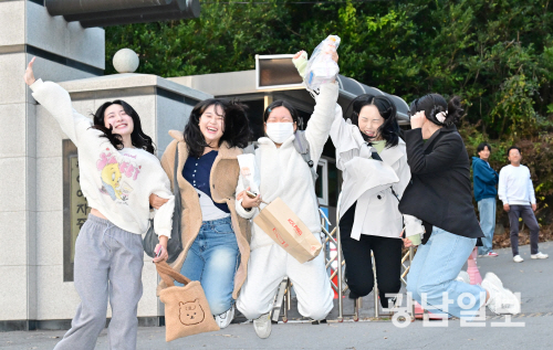 2025학년도 대학수학능력시험이 치러진 14일 오후 광주 남구 봉선동 동아여고에서 시험을 마친 수험생들이 밝은 표정을 지으며 기뻐하고 있다. 최기남 기자 bluesky@gwangnam.co.kr