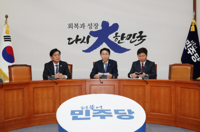 (서울=연합뉴스) 23일 오후 국회에서 열린 더불어민주당 방미의원단 기자간담회에서 조정식 의원이 발언하고 있다.