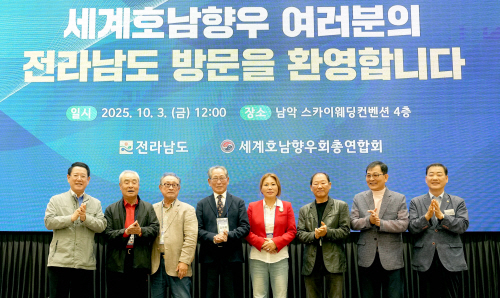 세계호남향우회총연합회(회장 이기자)는 3일 ‘2025 세계 호남인의 날’을 맞아 회원 250여 명과 함께 전남을 방문, 고향사랑기부금 3000만 원을 전달했다. 이번 기부는 이기자 회장을 비롯해 김원봉 제2대 회장, 이동수 3대 회장, 김영윤 4대 회장, 김점배 아프리카중동한인회 총연합회장, 손재민 중국호남향우회총연합회 전 회장, 김용덕 동경호남향우회 회장 등 주요 인사들이 함께해 의미를 더했다.