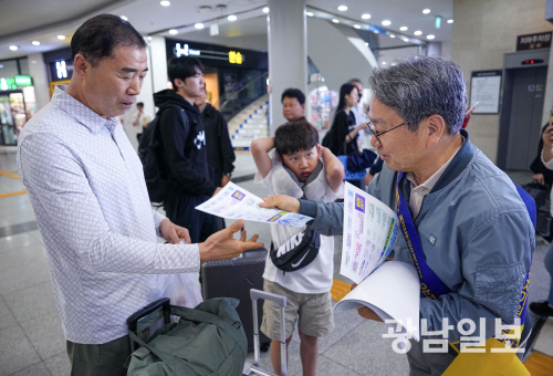 추석 연휴를 맞아 광주를 찾아오는 귀성객을 대상으로 ‘국가AI컴퓨팅센터 유치 캠페인’을 광주버스종합터미널, 광주송정역, 무등산에서 진행했다.