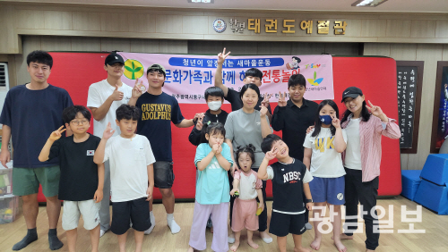 광주시동구새마을회(회장 김대영)는 최근 동구대학새마을동아리(회장 임재훈)회원들과 청년연대회원들이 한별태권도장 원생들과 함께 팽이치기, 딱지치기, 윷놀이, 연날리기등 우리나라 전통 민속놀이교실을 실시했다.사진제공=광주시동구새마을회