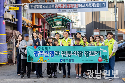 지난달 초록우산 어린이재단과 함께 ‘보름달 소원선물 후원’ 행사를 열고, 아동 가정에 총 700만 원 상당의 소원선물을 전달한 데 이어 최근 광주 남구 봉선시장에서 장보기 행사를 열고 500만 원 상당의 온누리상품권을 지원했다. 광주은행은 매년 명절마다 아동들과 함께 장보기를 체험하며 생활 속 경제교육은 물론 전통시장의 따뜻한 정을 배우는 시간을 마련해오고 있다.