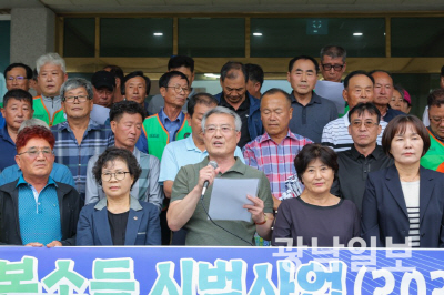 영암군 사회단체협의회는 최근 군청 앞에서 농어촌기본소득 시범사업 유치를 위한 성명을 발표했다.