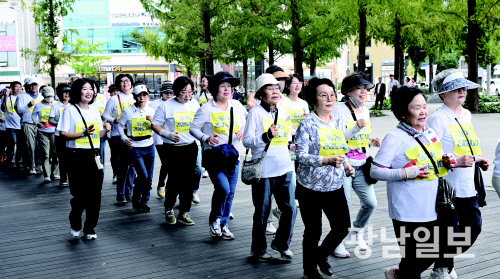 ‘우리의 한걸음이 충장을 밝힌다!’주제로 13일 오후 장동로터리 하늘마당 광장 일원에서 열린 주민과 함께하는 ‘슬로우 조깅’ 행사에 참여한 주민들이 힘차게 출발하고 있다.