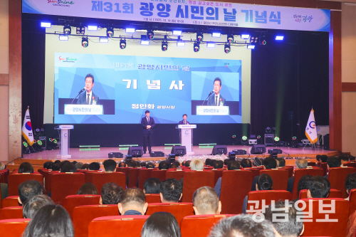 제31회 광양시민의 날 기념식이 지난 14일 광양시 커뮤니티센터에서 정인화 시장을 비롯해서 기관단체장과 시민 등 400여명이 참석한 가운데 열렸다.