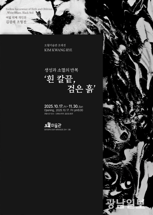 김광례 작가의 개인전이 오는 17일부터 11월 30일까지 오월미술관(관장 범현이)에서 ‘생성과 소멸의 반복-흰 칼끝. 검은 흙’이라는 주제로 열리고 있다. 출품작은 도조화(刀俎畵)와 부조(浮彫), 설치 등 총 16점.