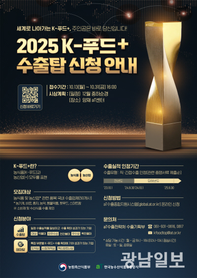 세부 일정과 신청 방법 등 자세한 사항은 공사 대표 누리집(www.at.or.kr), 전화(aT 수출기획부·061-931-0816)로 확인하면 된다.