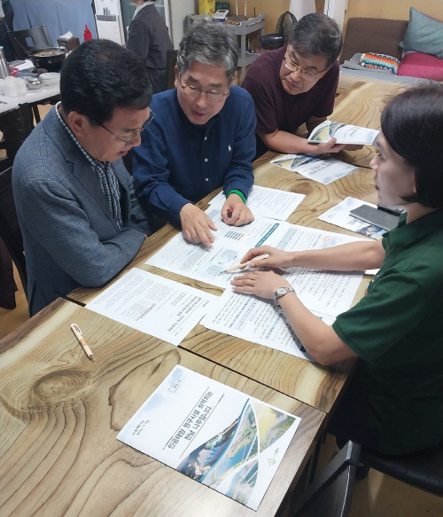 강상구 나주시 부시장(왼쪽 두 번째)과 신정훈 국회 행정안전위원장(왼쪽)이 최근 인공태양 연구시설 유치 전략을 논의했다.