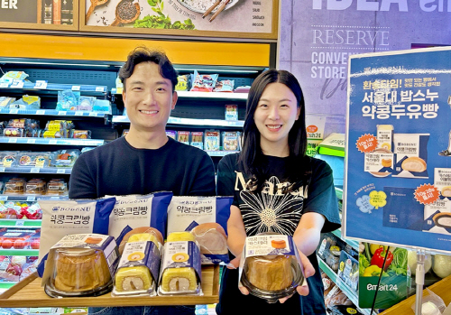 이마트24는 최근 서울대학교 기술지주자회사 ‘밥스누(BOBSNU)’와 협업해 ‘약콩두유빵 시리즈’ 3종을 출시했다. 지난 2015년 밥스누 브랜드 첫 상품으로 선보인 ‘약콩두유’는 100% 국산 약콩을 껍질째 갈아 넣어 식물성단백질, 식이섬유, 폴리페놀 등 약콩의 영양성분을 그대로 담았다. 이번 상품은 약콩크림빵, 카라멜 약콩크림롤, 약콩크림 카스테라로, 서울대 밥스누의 연구 성과물인 ‘약콩두유’ 원료를 넣은 크림을 사용한 것이 특징이다.