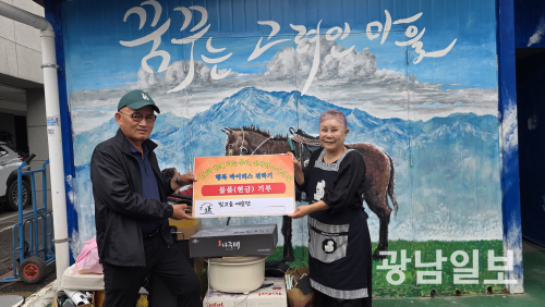 (사)빛고을예술단 나덕주 단장은 14일 오전 광주 광산구 월곡동 소재 ’역사마을 1번지 ‘고려인마을을 찾아 신조야 대표에게 미니 가습기와 나주 배 등 30여점의 물품을 기부했다고 밝혔다.