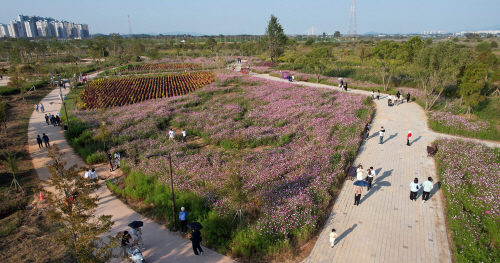 나주 영산강정원은 분홍, 노랑 등 형형색색의 대규모 코스모스 꽃길이 조성됐다. 꽃길을 따라 걷다 보면 곳곳에 포토존이 마련돼 사진을 찍으며 추억을 남길 수 있다.