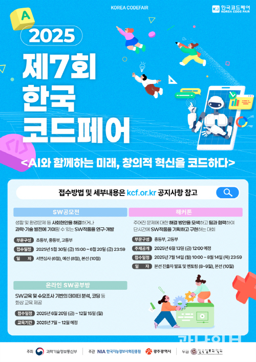 광주시와 과학기술정보통신부, 한국지능정보사회진흥원과 함께 개최하는 이번 대회는 ‘인공지능(AI)과 함께하는 미래, 창의적 혁신을 코드하다’를 주제로 초·중·고등학교 학생들이 참여해 소프트웨어와 AI융합 역량을 겨루는 청소년 중심의 기술축제다.