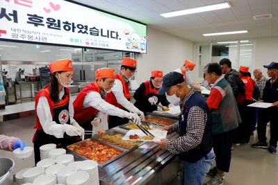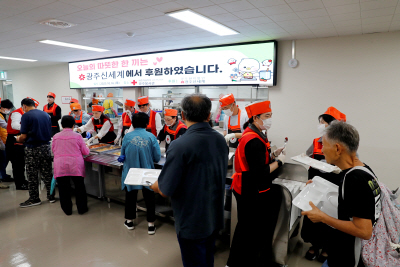 대한적십자사 광주봉사관은 지역 내 형편이 어려운 어르신들을 위해 무료 급식소를 운영 중이다. 화요일과 목요일 점심 식사를 무료로 제공하며 하루 평균 250명이 이용하고 있다.