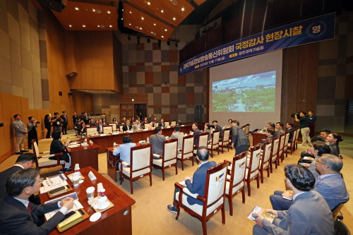 지난 17일 오전 광주 북구 광주과학기술원 오룡관에서 국회 과학기술정보방송통신위원회 국정감사 현장시찰이 진행되고 있다. 연합뉴스