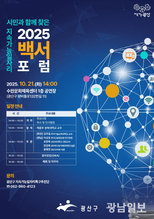 광산구는 이날 오후 2시께 ‘시민과 함께 찾은 지속가능 일자리’를 주제로 2025 지속가능 일자리 백서 포럼(공개토론회)을 개최한다고 밝혔다.