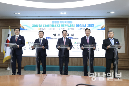 영암군은 최근 전남도청에서 전남도, 나주시, 영광군, 한전KDN과 ‘공공 유휴부지 활용 공익형 재생에너지 발전사업 업무협약’을 체결했다.