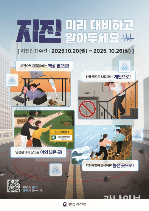 광주시는 행정안전부와 전국 지자체와 연계해 ‘지진안전 전용 누리집(www.지진안전.com)’을 통해 지진 행동요령 안내, 참여형 이벤트, 웹툰·영상 콘텐츠 공유 등 온라인 홍보 활동을 집중 추진한다.