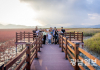 ‘갯벌단풍 여행 in 남파랑길’ 프로그램 참가자들이 와온해변 칠면초 군락지 앞에서 단체 사진을 촬영하고 있다.