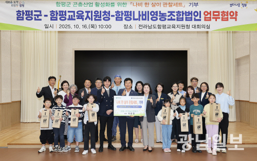20일 함평군에 따르면 최근 전남함평교육지원청, 함평나비영농조합법인과 함께 곤충산업 활성화·생태교육 연계를 위한 업무협약(MOU)을 체결했다.