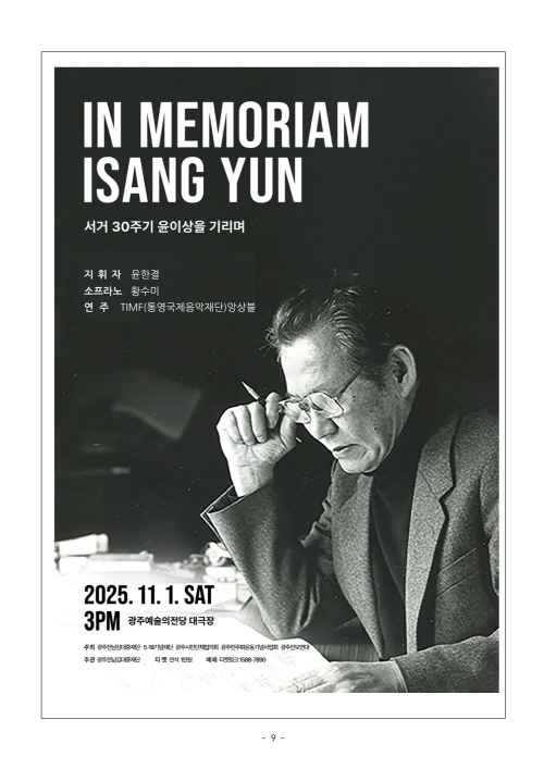 이번 행사는 ‘윤이상의 삶과 예술, 광주 그리고 김대중’을 주제로, 분단과 냉전의 시대를 넘어 평화와 화해의 메시지를 전한 윤이상 선생의 음악 세계를 재조명한다.