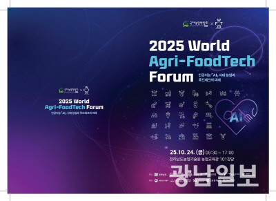 22일 시에 따르면 오는 24일 전남농업기술원 대강당에서 전남국제농업박람회, 월드푸드테크협의회와 함께 ‘2025 월드 아그리 푸드테크(Agri-FoodTech) 포럼’을 연다.