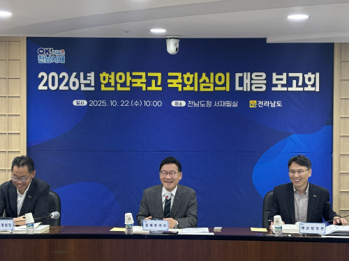 전남도는 22일 도청 서재필실에서 ‘2026년도 국고 현안사업 국회심의 대응 보고회’를 열고, 실국별로 예산 반영 현황과 문제점을 점검하며 증액이 필요한 주요 사업의 대응 논리를 보완했다. 회의는 강위원 경제부지사가 주재했으며, 신규·계속사업 등 130여 건의 서면 질의서를 중심으로 대응 방향을 심도 있게 논의했다.