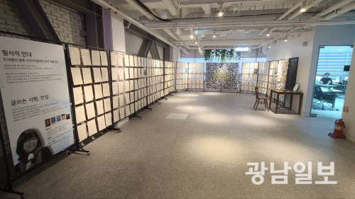 한강의 작품에 대한 이해를 꾀하기 위해 전일빌딩245에서 진행된 필사전시회 모습.