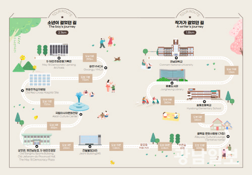 그동안 수상기념행사 ‘광주에서 온 편지’를 비롯해 한강 작가 노벨문학상 수상기념 ‘문학의 밤’ 행사 등 크고 작은 행사들이 이어졌고, ‘카페, 소년이 온다’가 전일빌딩245 1층에 개설되는가 하면, 노벨문학상 속 ‘소년의 길’(전일빌딩245 시민문화체험 특화프로그램 5∼6월·9∼11월 운영) 역시 개설, 운영에 들어갔다. 소설 ‘소년이 온다’를 배경으로 한강 작가가 집필 당시 걷던 길을 ‘하나의 관광코스’로 만든 것이었다. 5·18기록관∼옛 적십자병원∼상무관∼효동초를 거치는 코스로 ‘광주방문의 해’를 연계해 12월까지 주말투어로 무료 운영한다는 복안이었다.